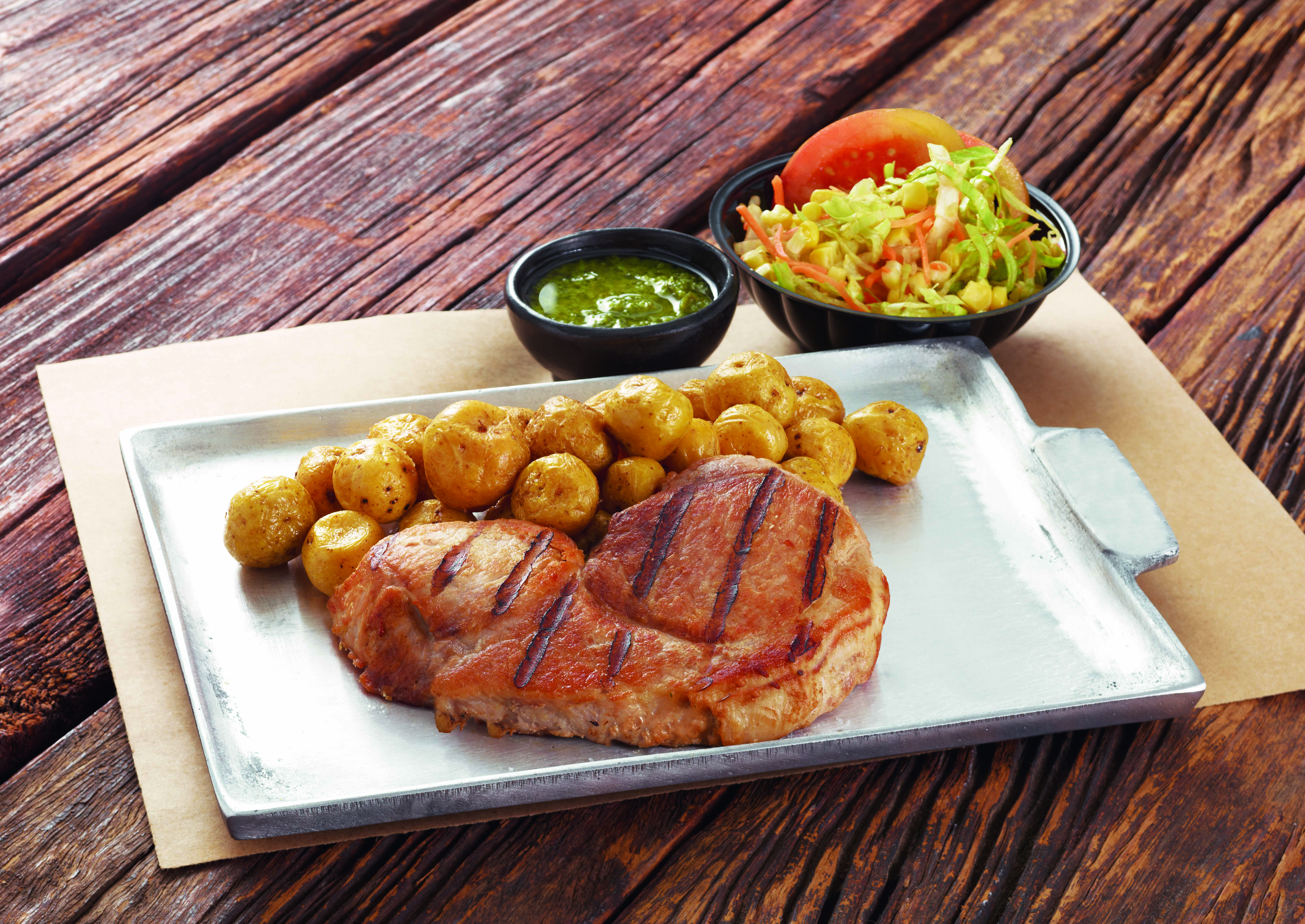 Corte argentino del lomo de cerdo 300 gr y 2 acompañamientos a elección.