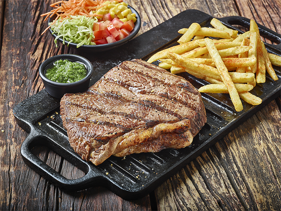 Corte mariposa seleccionado del lomo ancho de la res 300 gr y 2 acompañamientos a elección.