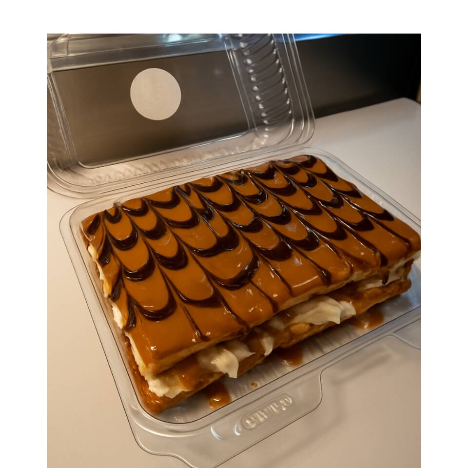 Milhojas artesanal con capas crujientes de hojaldre, crema de leche y arequipe