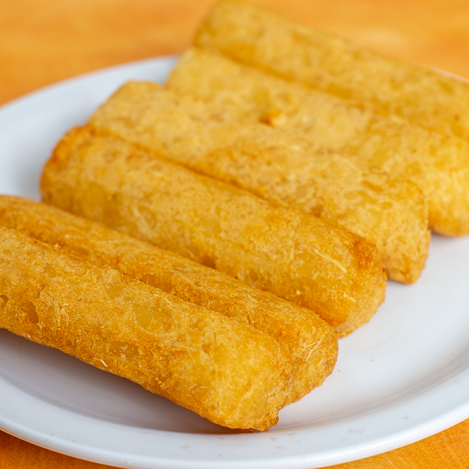 Salsa napolitana, carne desmechada, maíz, queso y plátano frito.