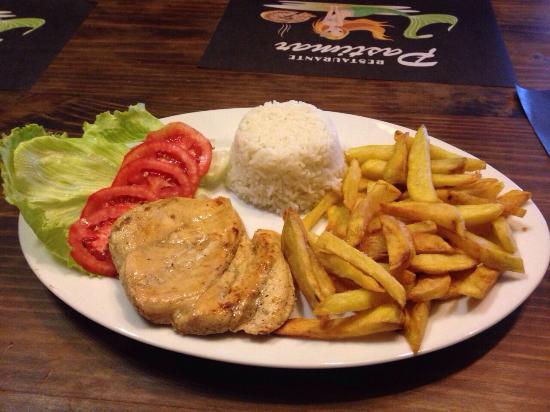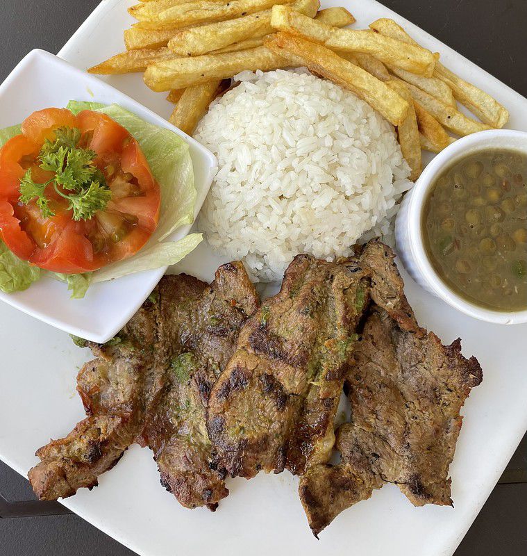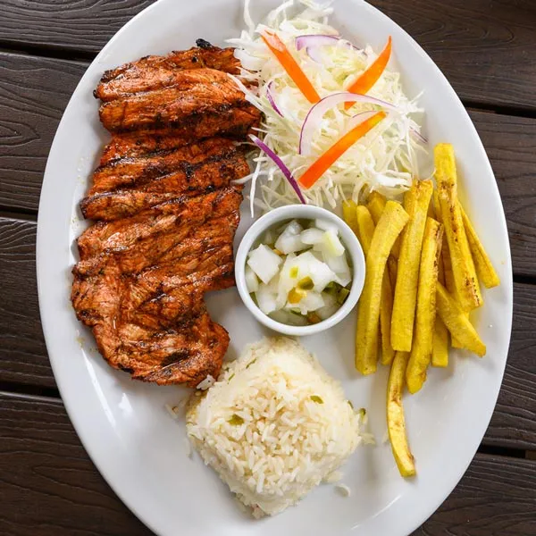 Acompañado de papá francesa, patacon, arroz, ensalada, sopa del dia y gaseosa 250ml