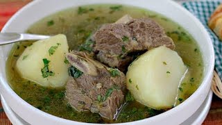 Caldo de Pata de Res acompañado de Arepas Rellena de Queso y Bebida Caliente*1