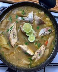 Caldo de Pescado acompañado de Arepas Rellena de Queso y Bebida Caliente