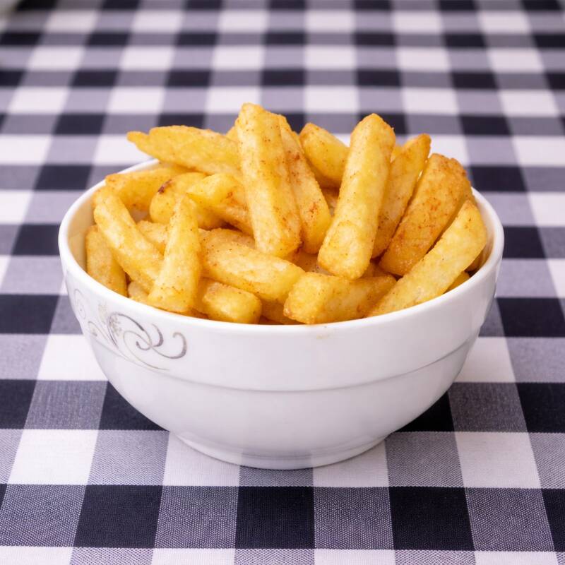 Papas a la francesa, salchicha en trozos, queso doble crema y cabello de ángel.