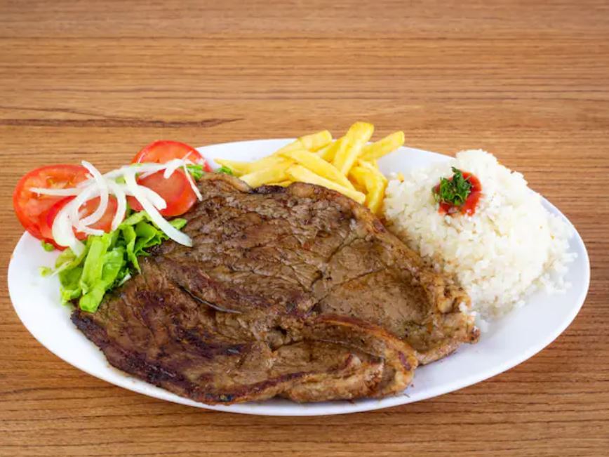 300 gramos de res acompañado de arroz blanco con porción de papas a la francesa o yuca