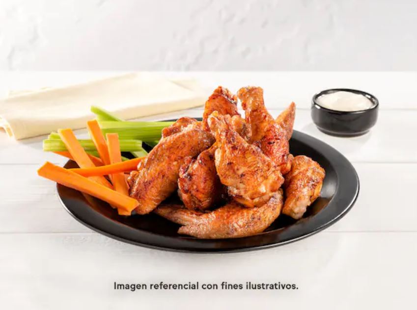 16 piezas de Alitas: picantes , acompañadas de porción de francesa, yuca o criolla .