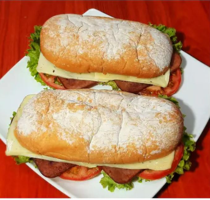 deliciosos Sandwich de jamon, queso, tocineta, papa chips, vegetales y salsas