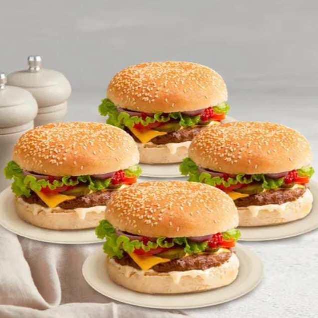 4Deliciosas hamburguesa artesanales. pan, hamburguesa, queso, jamón, lechuga, tomate salsa de la casa y papa chit. mas gaseosa 1.5 productos Postobón( disponibilidad de tienda)