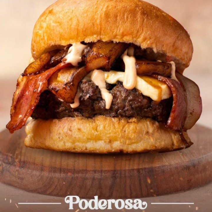 Deliciosa hamburguesa de carne artesanal con un rico filetito de pollo (110g) con queso, jamón, vegetales, cebolla grille, , papita chip con salsa mayonesa, tomate y piña.