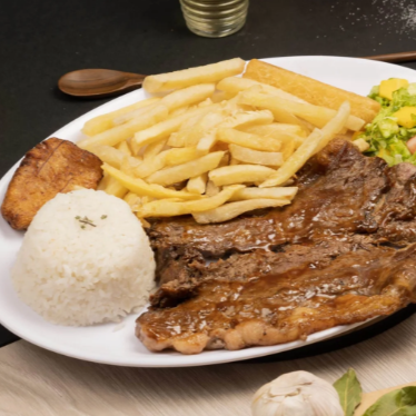 deliciosa carne de res de 300g con papa francesa , con arroz blanco