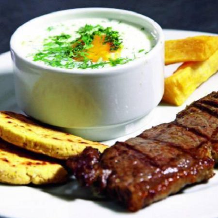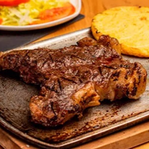 Exquisito corte de churrasco, acompañado de papa, yuca, plátano, ensalada de la casa y guacamole.