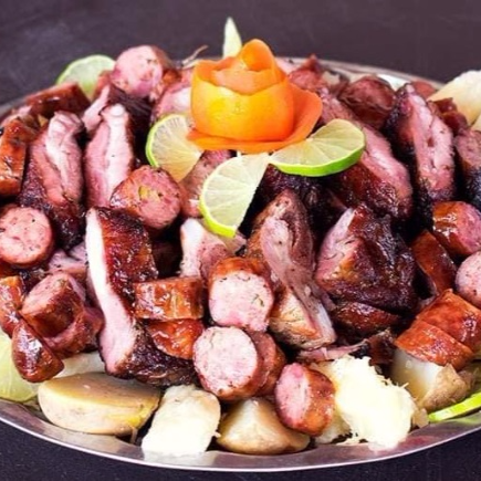 Especial para compartir...deliciosa combinación de carne a llanera (pulpa y costilla), morcilla, chorizo llanero, acompañado de papa, yuca, plátano, guacamole, arepa boyacense.