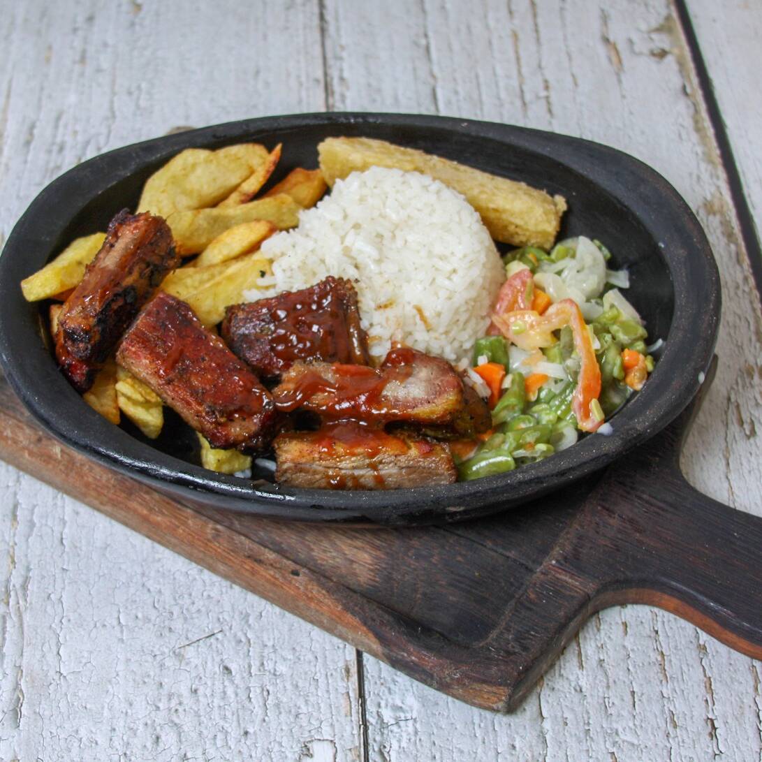 Exquisito Plato Ejecutivo De Costillas al barril, Acompañado De Sopa Del Dia, Arroz, Papa, Plátano, Ensalada