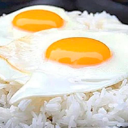 2 Huevos Fritos Con Arroz Blanco Acompañados de Chocolate y Pan $