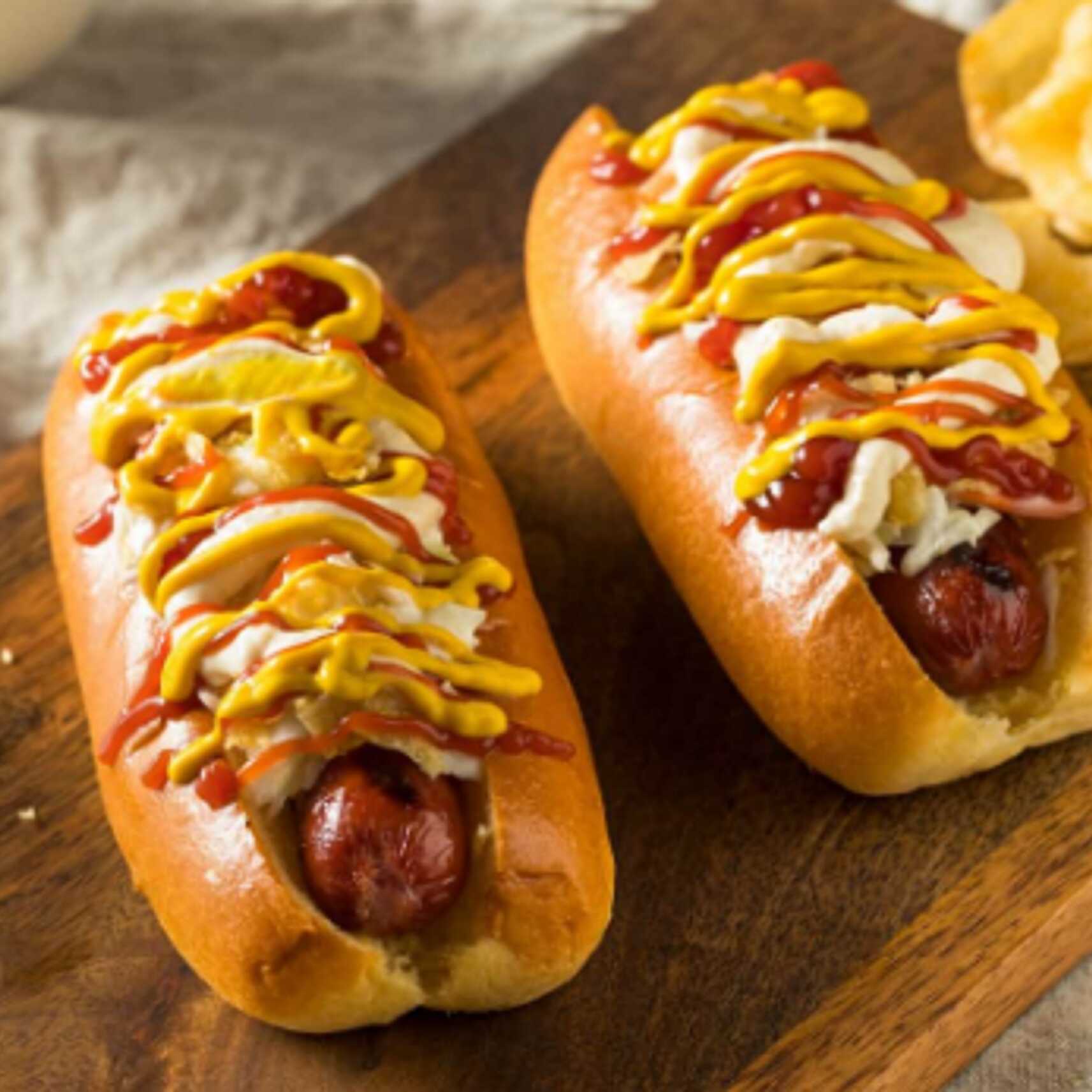 2 Exquisitos Chorizos Llaneros en pan de Perro acompañados de Cebolla grille, queso y tocineta Con Papa Francesa y 2 gaseosa 250 ml