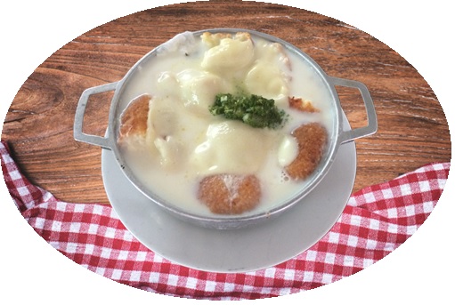Cebolla cabezona, leche, huevo, cilantro, almojábana y queso.