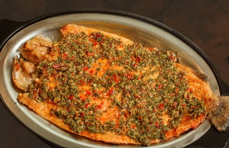 Filete de trucha al grill con salsa a elección (Pesto o Ajillo) incluye dos acompañamientos de tu preferencia.
