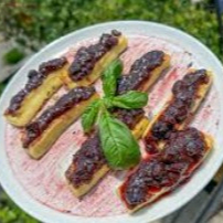 Delicioso queso artesanal asado a la perfección bañado en una exquisita y dulce reducción de frutos rojos seleccionados.