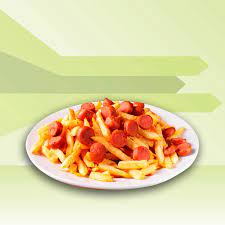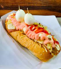 Salchicha americana, queso, tocineta, cebolla, huevo de codorniz, papas chips