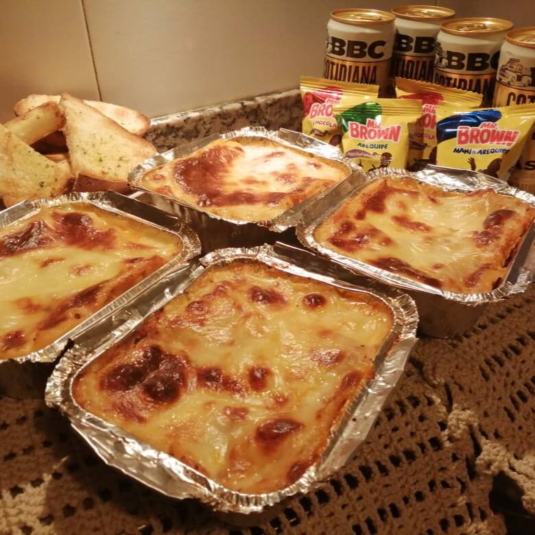 6 Lasagnas sabor a elección con Vino Tinto 750 ml, 6 mini brownies y porcion de pan
