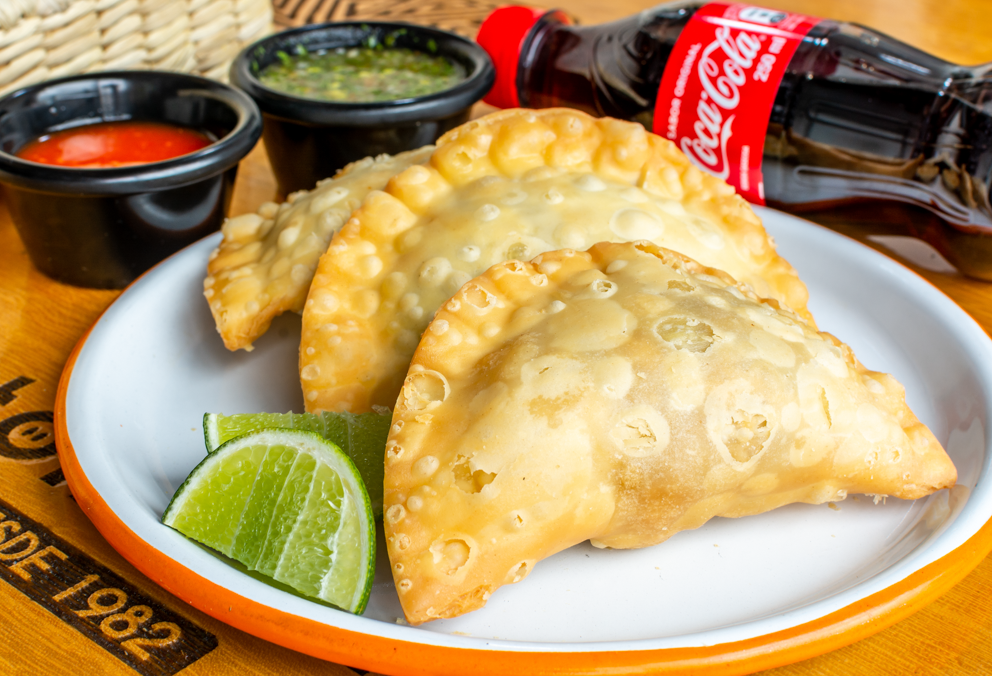 3 Deliciosas empanadas acompañadas de gaseosas no retornable 250 ml.