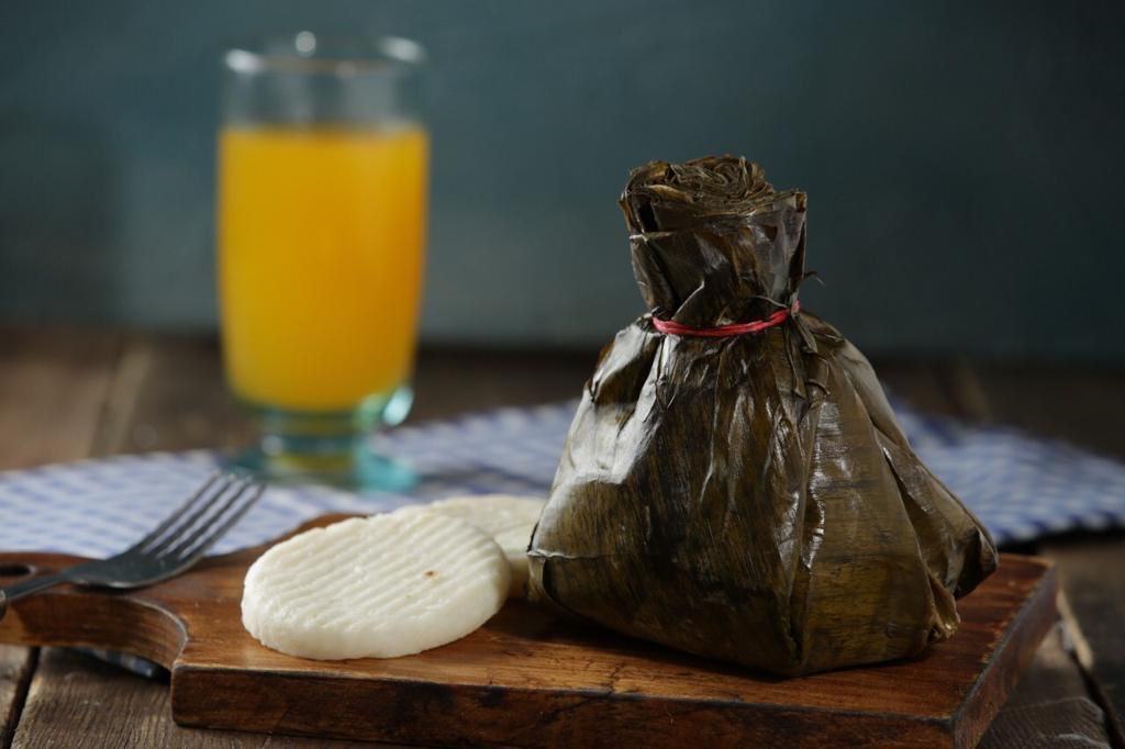 Natilla típica tolimense de harina de maíz envuelta en hoja de plátano y cocinada al horno.