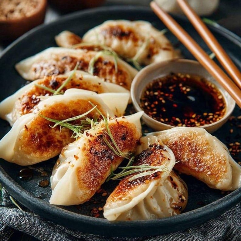 4 gyosas rellenas de carne y vegetales
