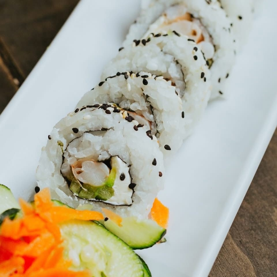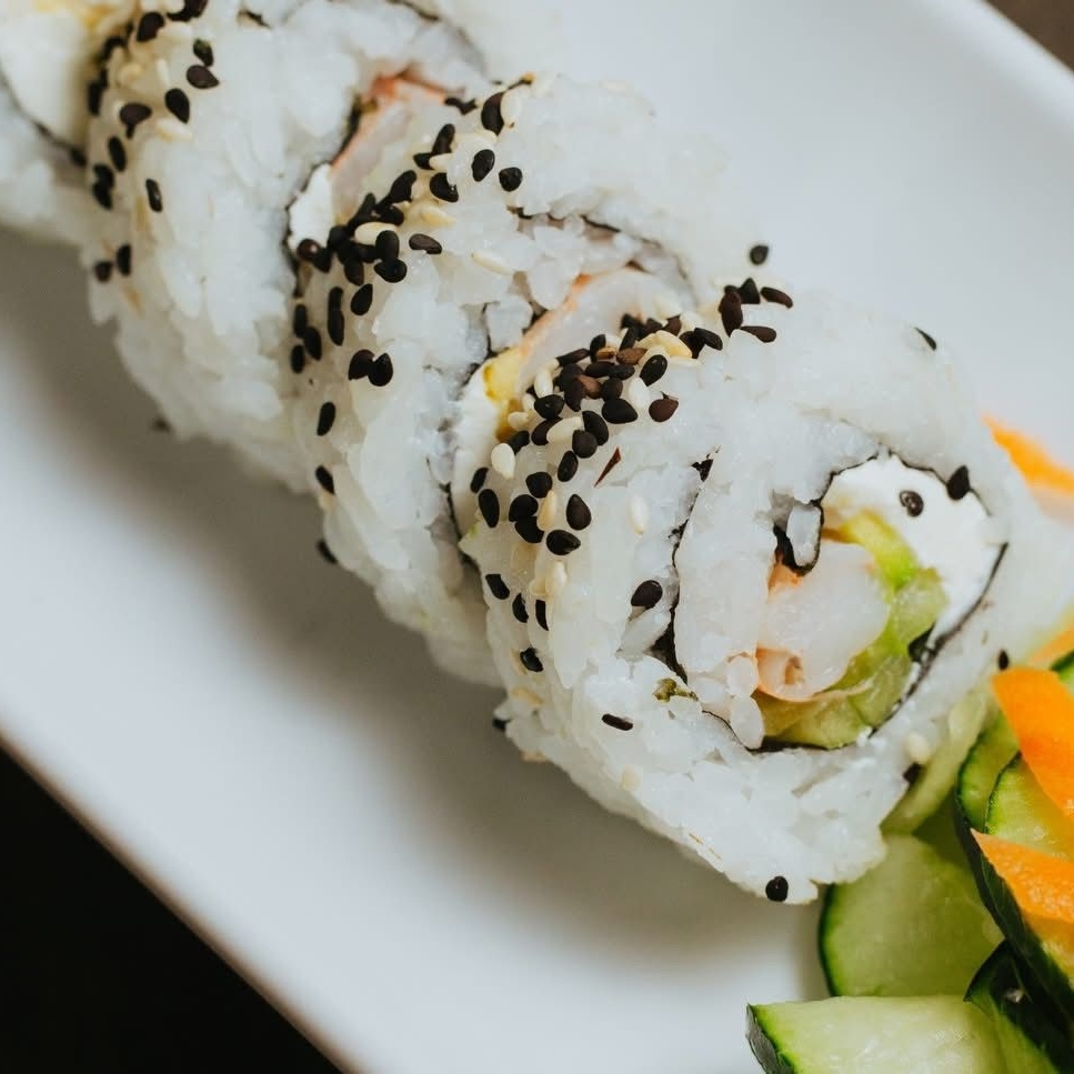 Roll cremoso y crujiente con queso crema, aguacate, zanahoria y pepino envuelto en ajonjolí.