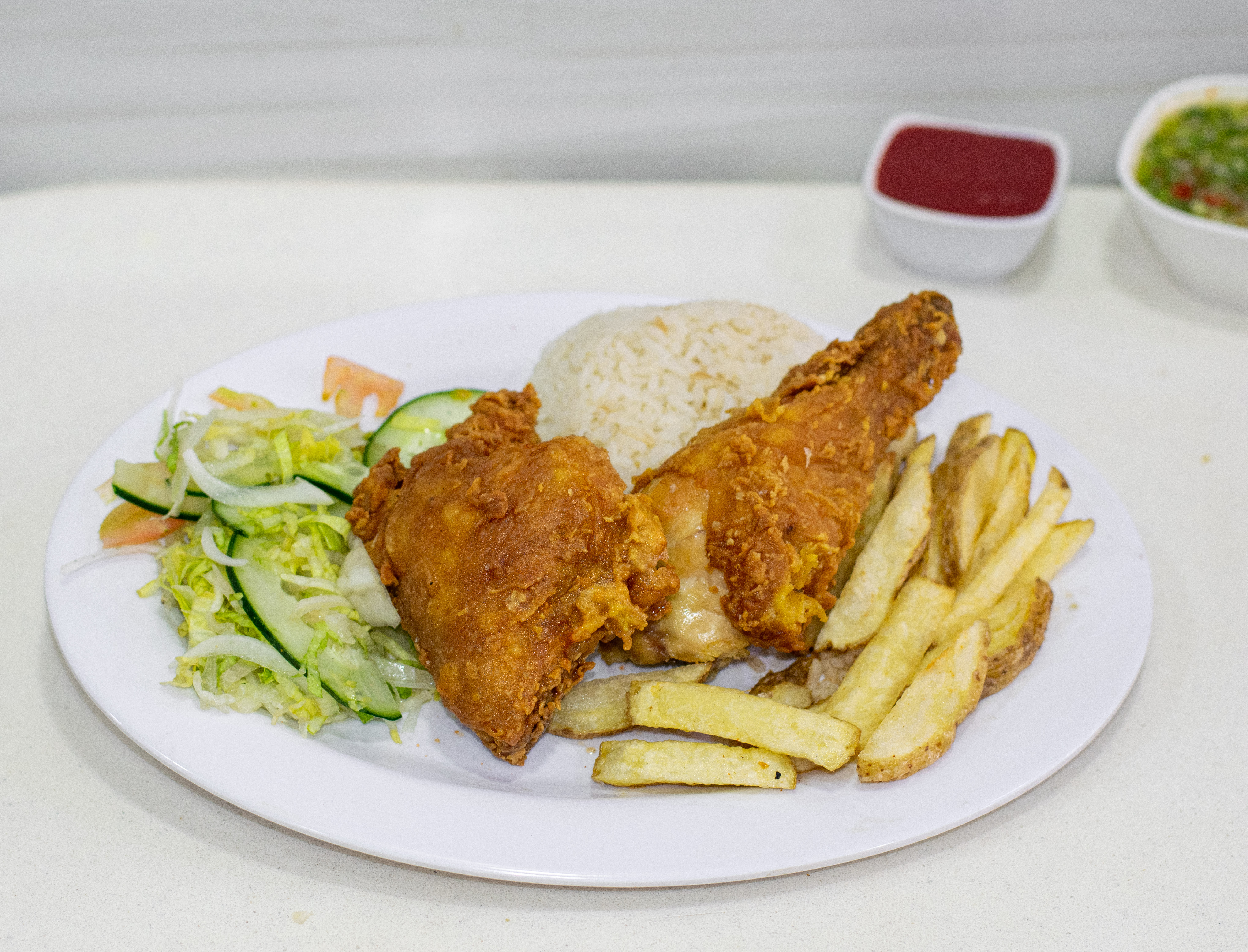 Medio pollo broaster acompañado de papa a la francesa artesanal.