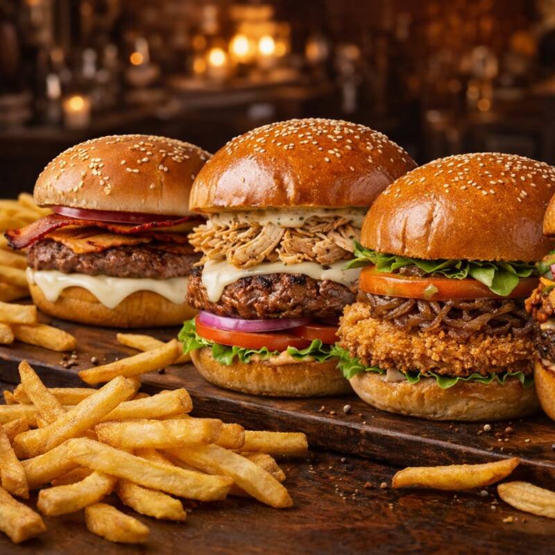 Deliciosa hamburguesa en pan brioche suave y esponjoso, con carne jugosa, queso tajado derretido, tocineta crocante y huevo de codorniz. Acompañada de cebolla fresca, lechuga y tomate que le dan el balance perfecto.