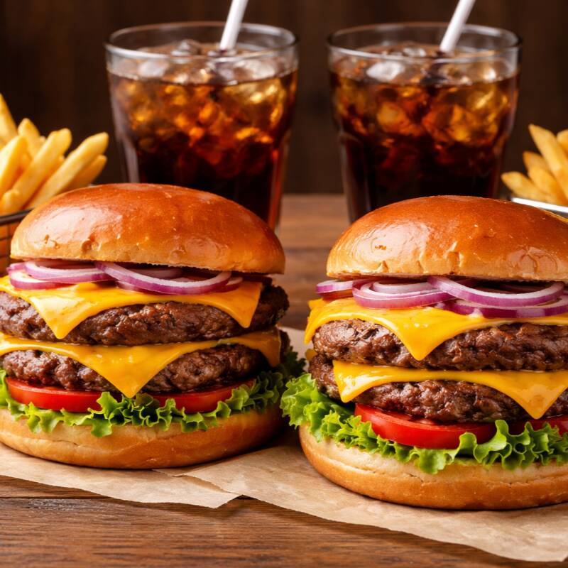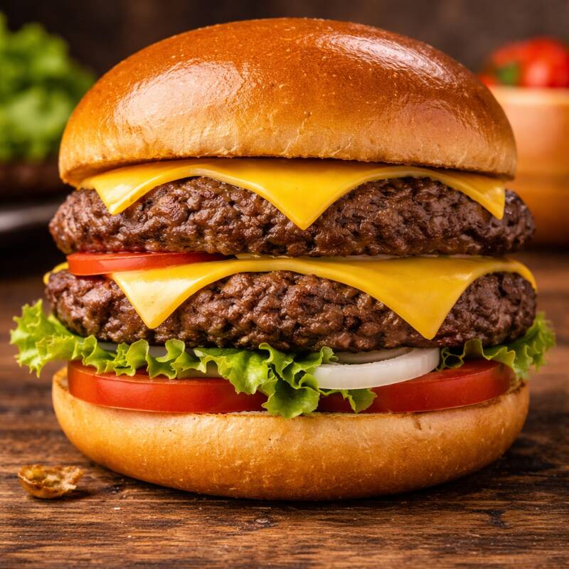 Potente hamburguesa en pan brioche suave y esponjoso, con doble carne jugosa y queso tajado derretido. Acompañada de tomate fresco, lechuga crujiente y cebolla que le dan el equilibrio perfecto 🤤.