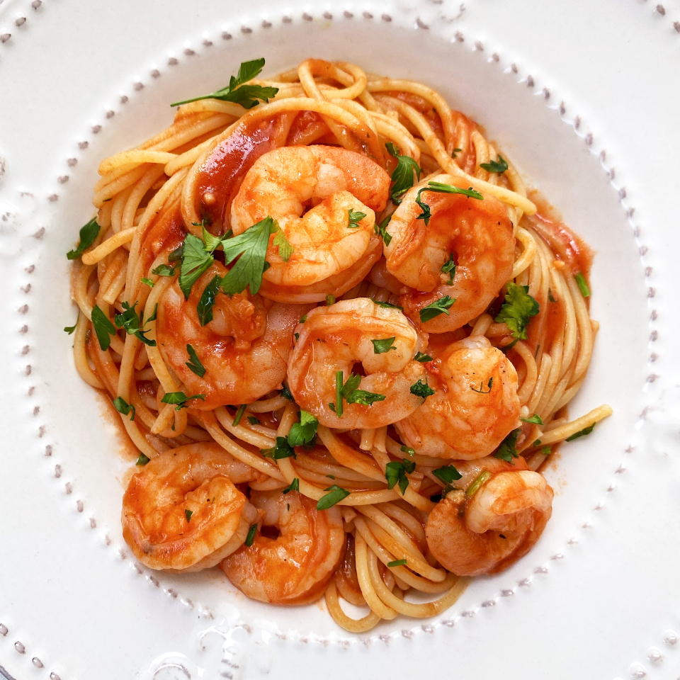 PASTA CON CAMARONES SABOR MEDITERRANEA