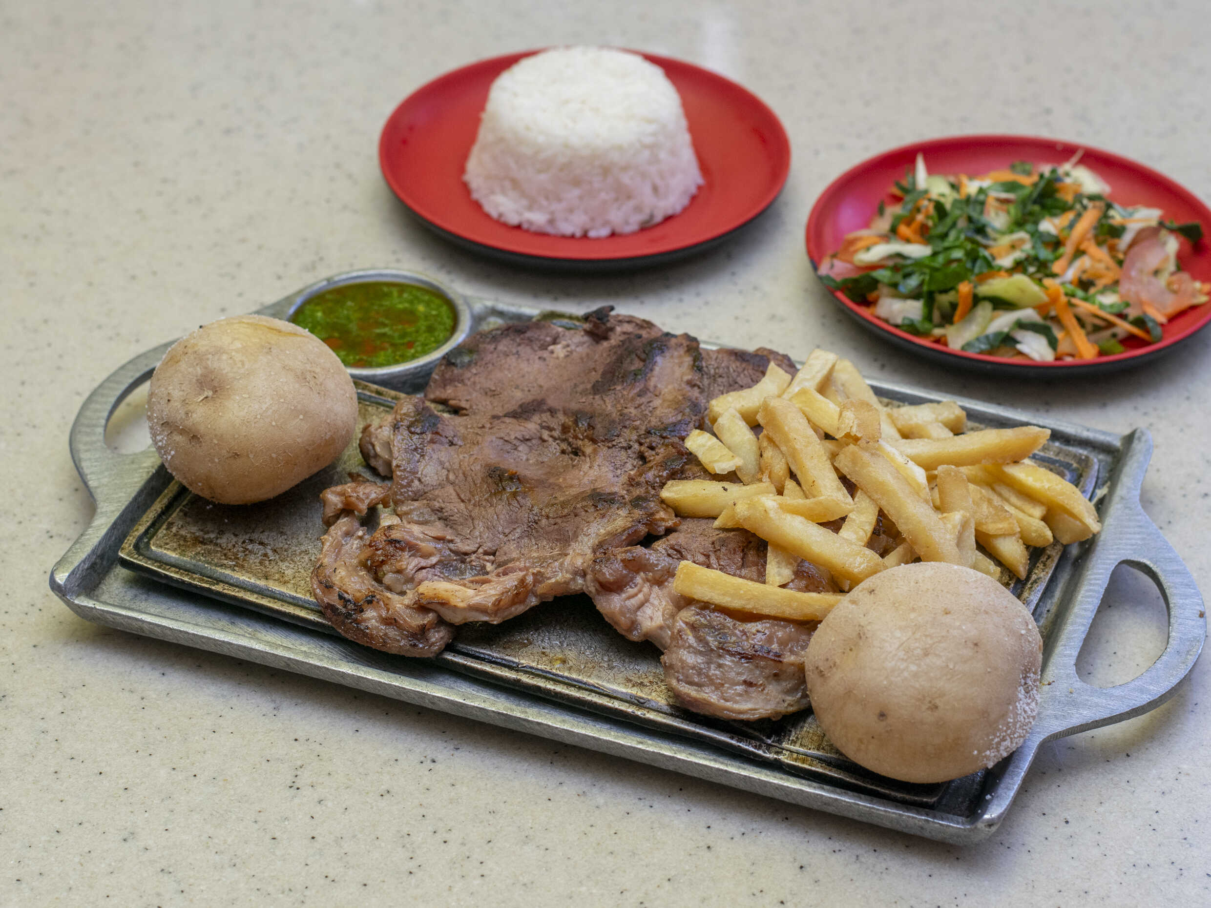 Arroz, ensalada, porción de francesa y gaseosa 250 ml (según disponibilidad de la tienda).