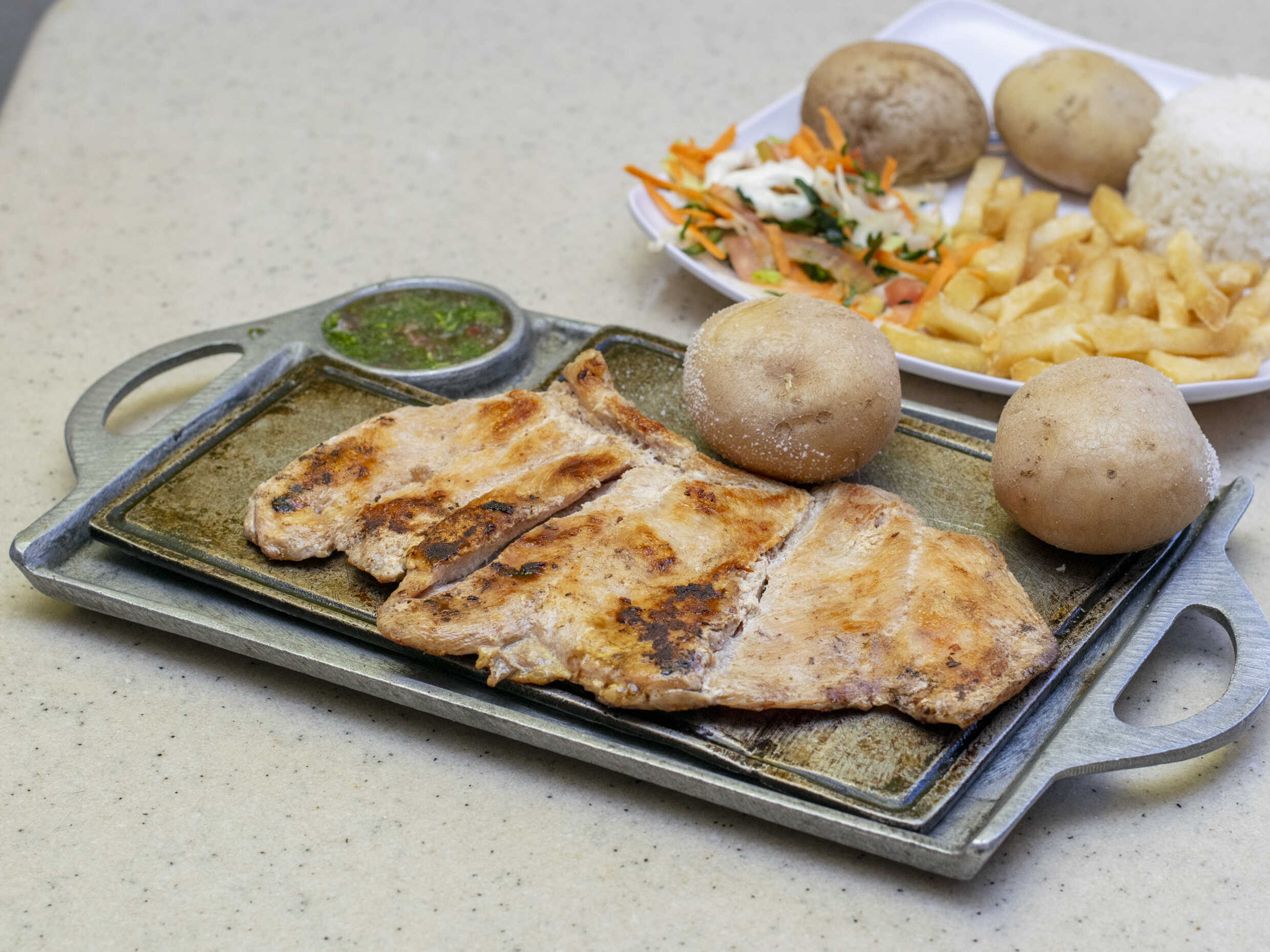 Elige tu pollo asado o broaster (8 presas) con papa salada, arepa y Gaseosa 1 L (sabor sujeto a disponibilidad de la tienda).