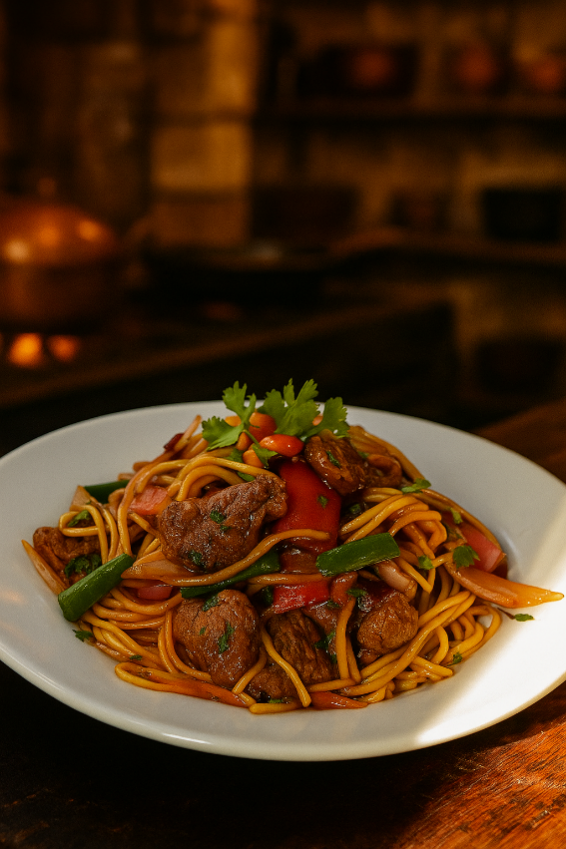 Tallarines salteados al wok con jugoso lomo, verduras frescas y el inconfundible sabor de la salsa de sillao y ostión.