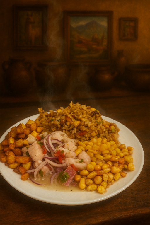 Refrescante ceviche peruano junto a un sabroso arroz chaufa, la dupla perfecta para un plato completo y lleno de sabor.