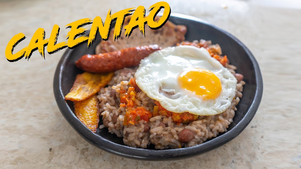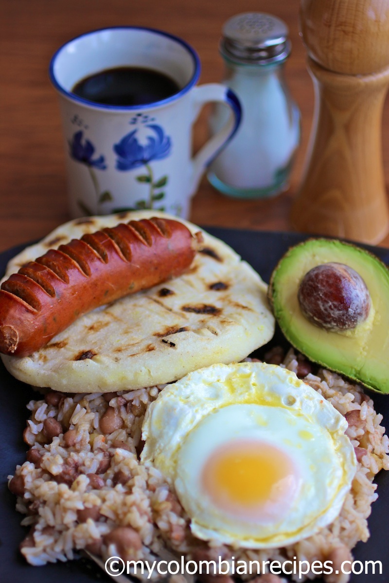 Calentado de Frijol: arroz, frijol, chorizo, Huevos fritos y Arepa + Bebida