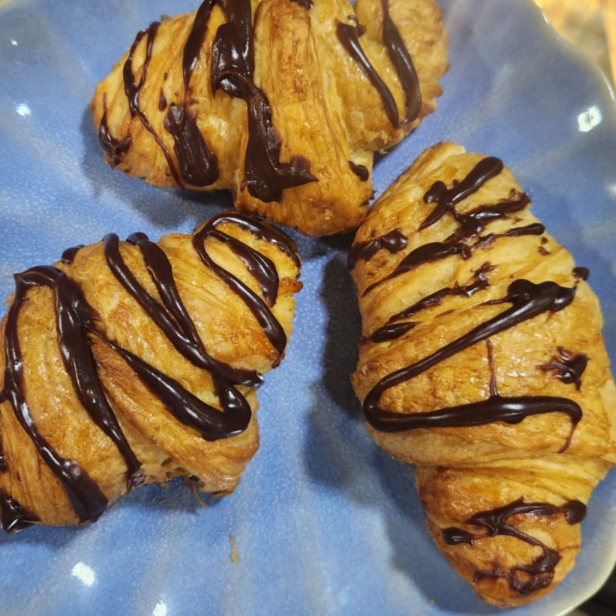 delicioso croissant de mantequilla, relleno con chocolate, precio unidad