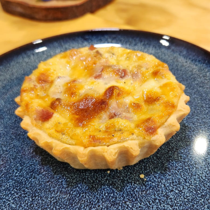Tartaleta rellena con queso mozzarella, tocineta ahumada y una deliciosa mezcla, precio unidad. Calentar un minuto en horno microondas o tostador.