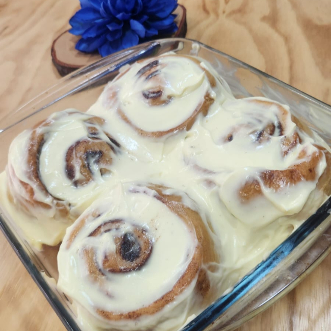 Rollitos de canela suaves, dulces, esponjosos ! cubiertos con un frosting de queso crema y vainilla. Precio por unidad.
