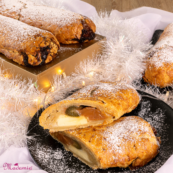 Pastel de hojaldre, relleno de queso crema Filadelfia y jamón Pietran.