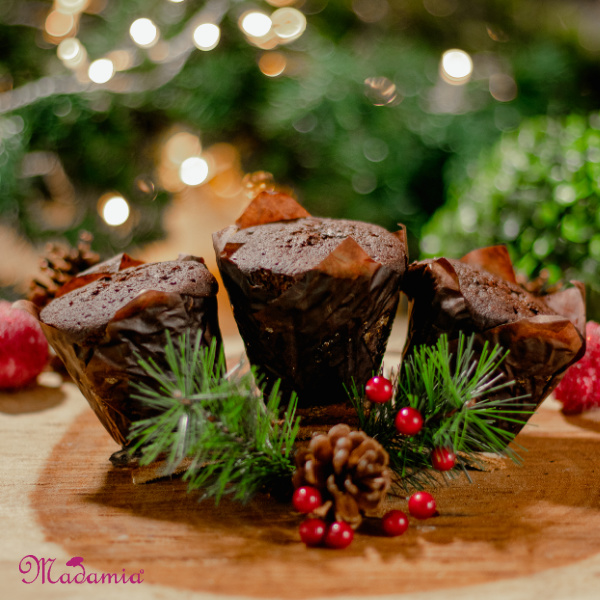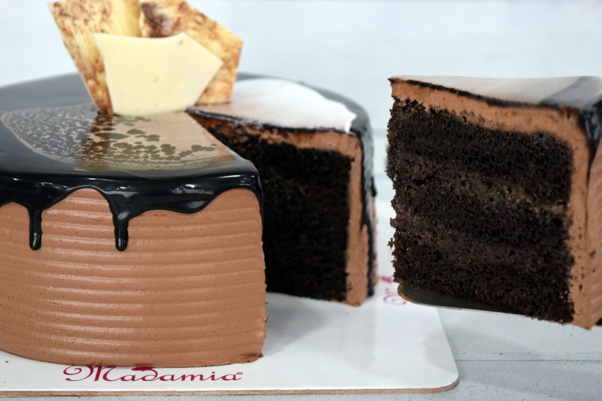 suave bizcocho de vainilla combinado con chocolate y deliciosas nueces de macadamia. crocante y deliciosa