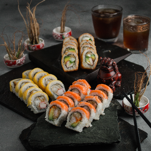 3 rollos de 12 bocados cada uno a elección + 2 bebidas (té de la casa).