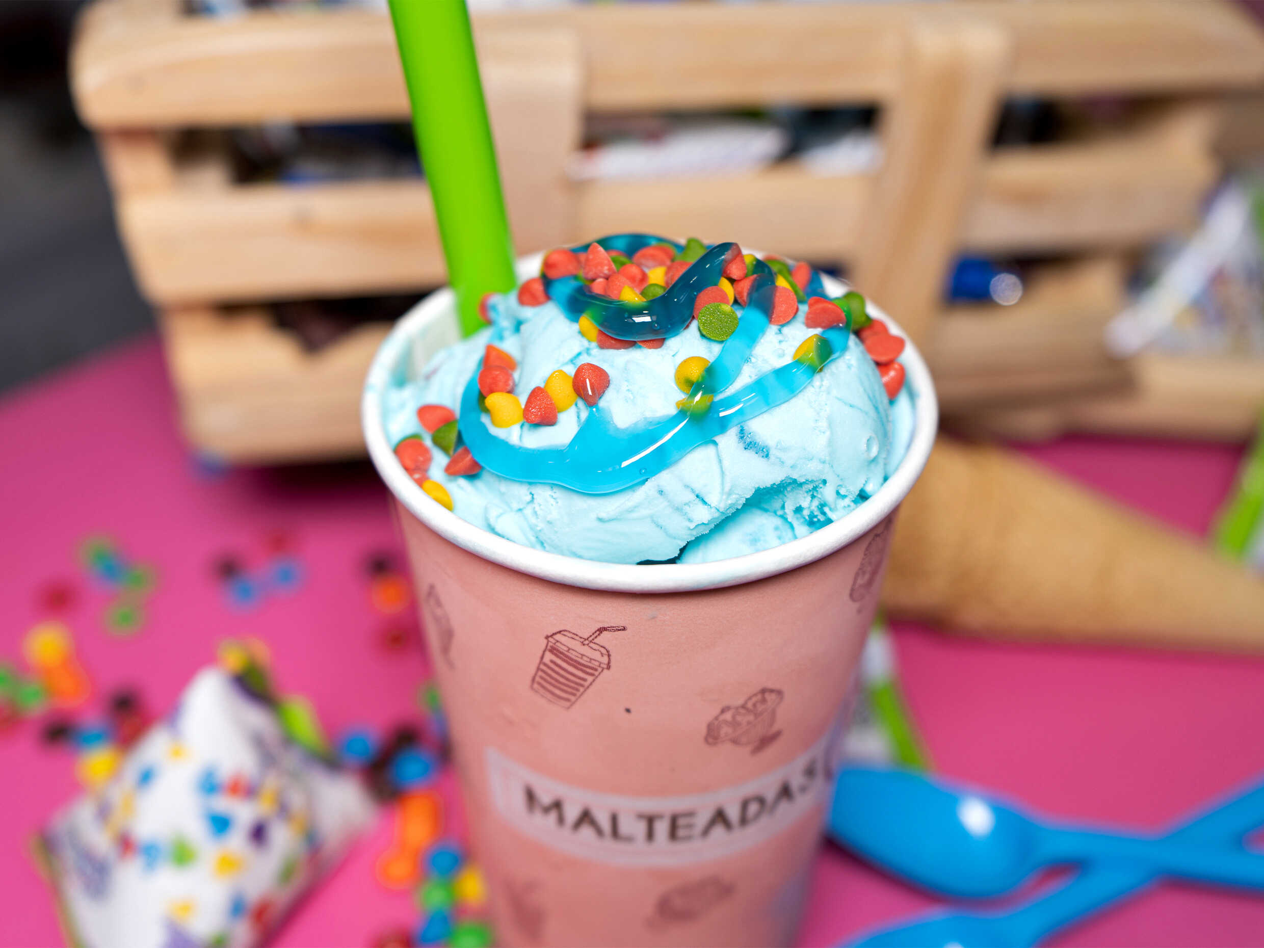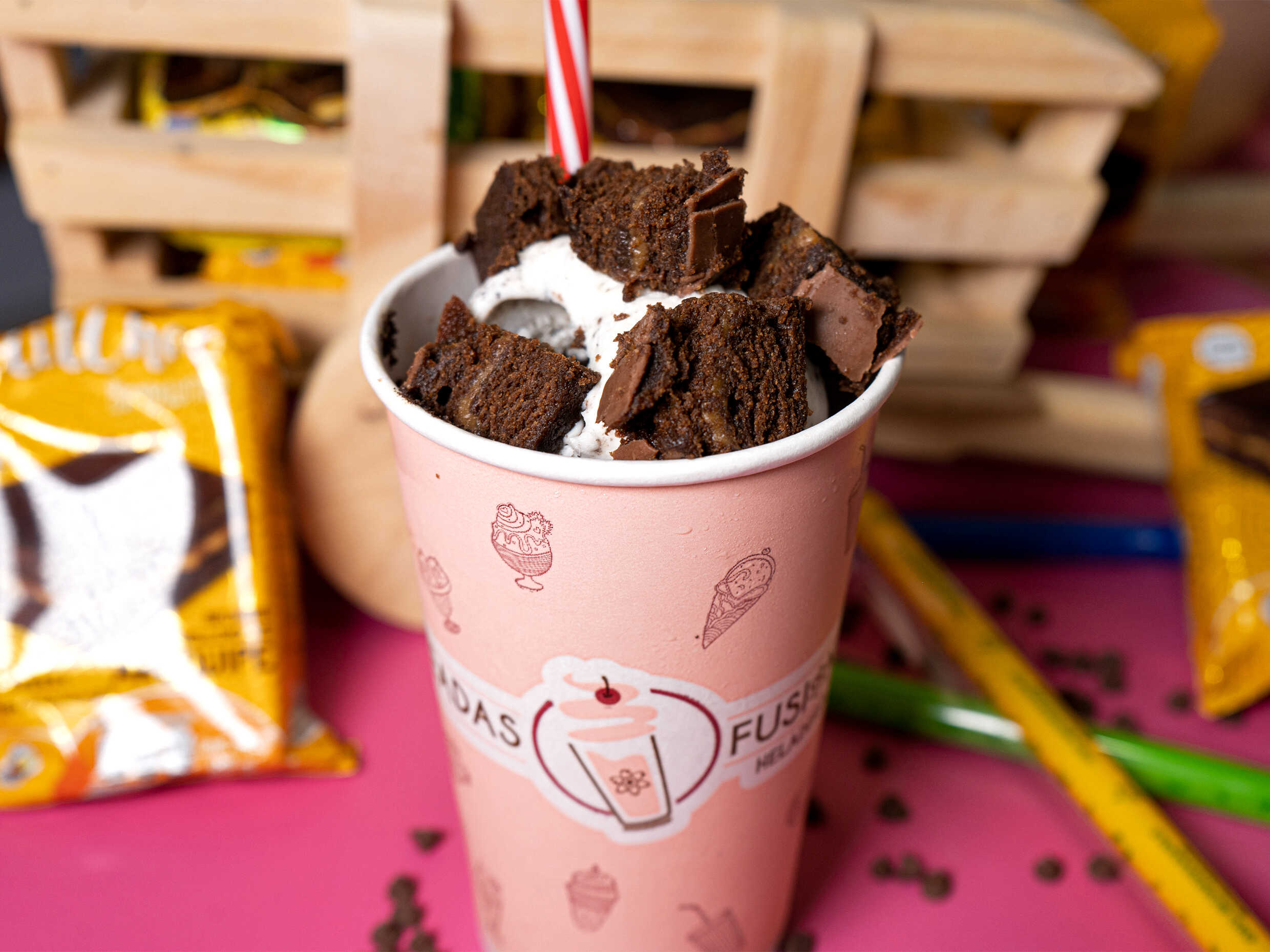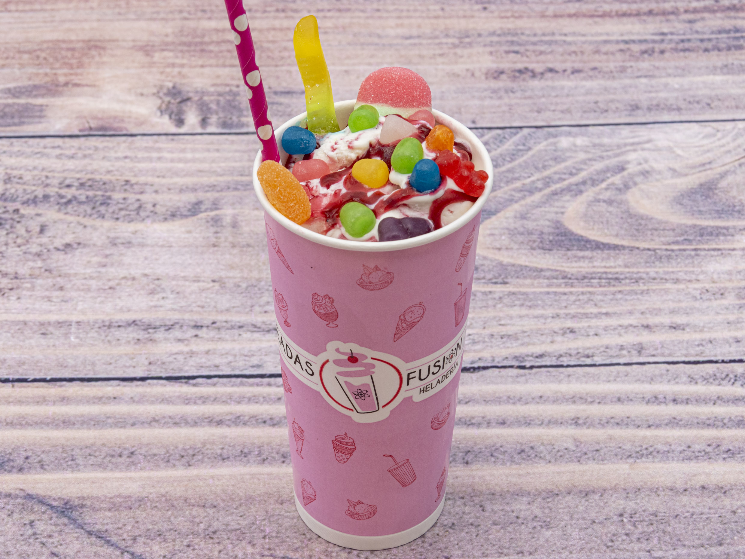 Vaso sabor a eleccion vainilla, brownie, placer de chocolate, arequipe, maracuya, vainilla chips, chicle, ron con pasas, caramelo, tres leche, cereza, frutos de bosque, uva.