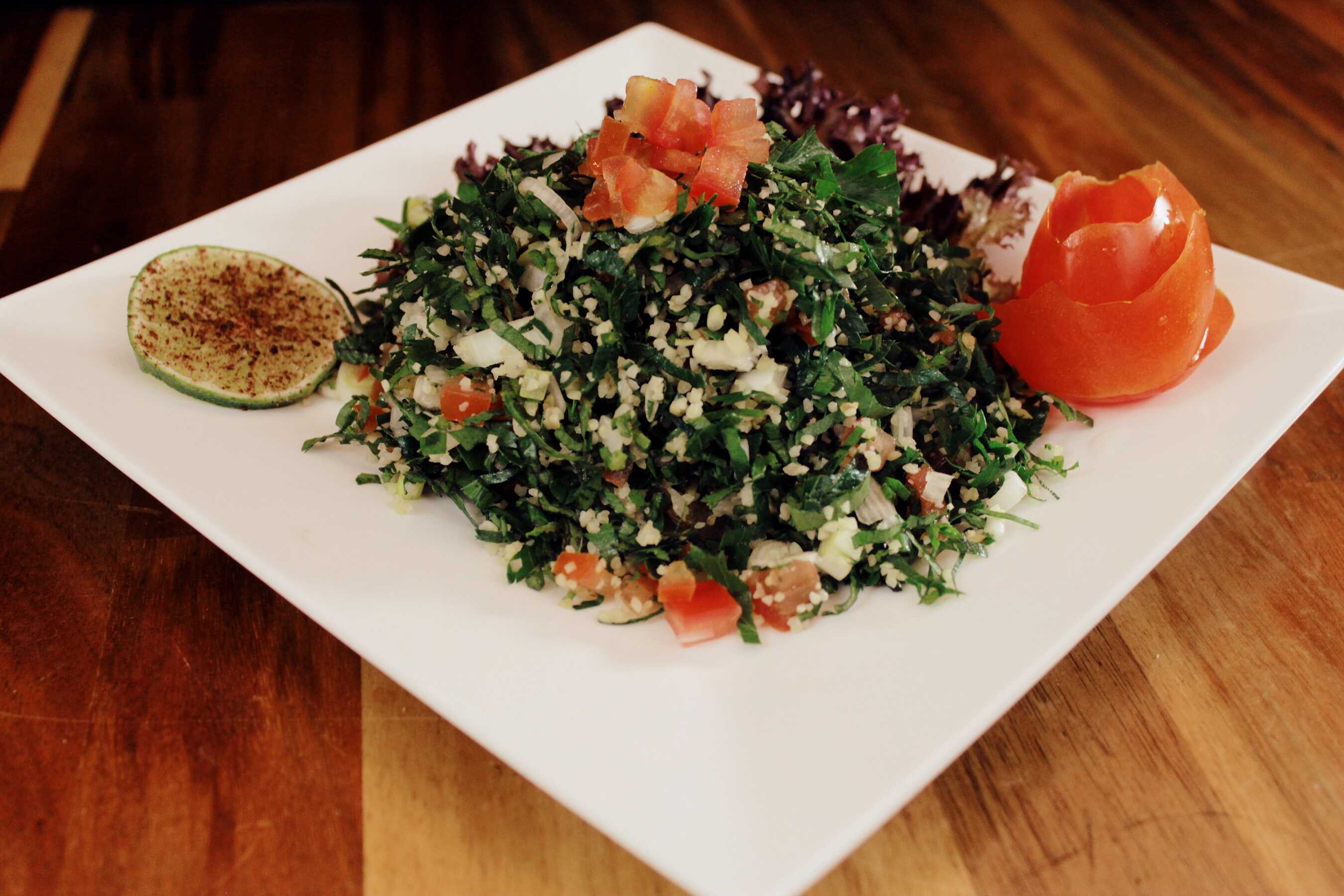 Bourgul trigo, perejil liso, tomate, cebolla y hierba buena.