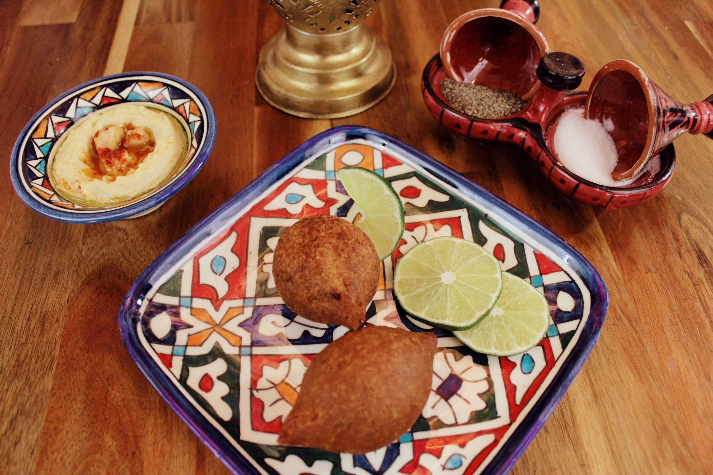 Kibbeh a base de bourgul trigo y carne molida con hummus.