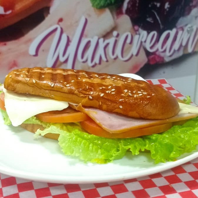 Jamón, queso, lechuga, tomate y salsa de la casa.