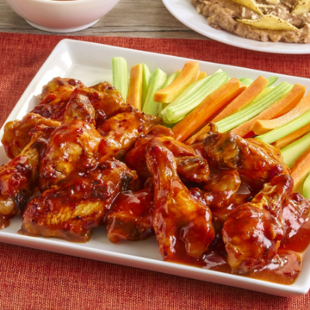 16 Piezas de alas crujientes, papas artesanales y salsas a disponibilidad de la tienda.