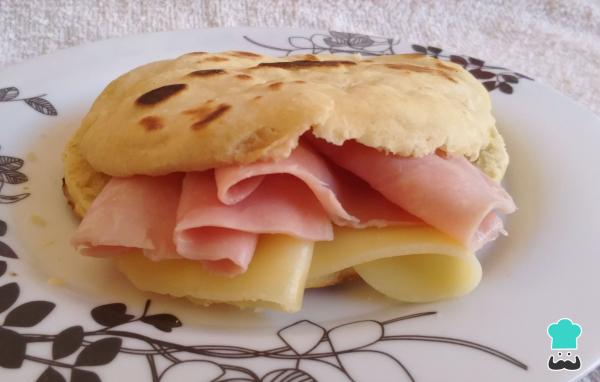 Arepa rellena con queso, jamón y queso.