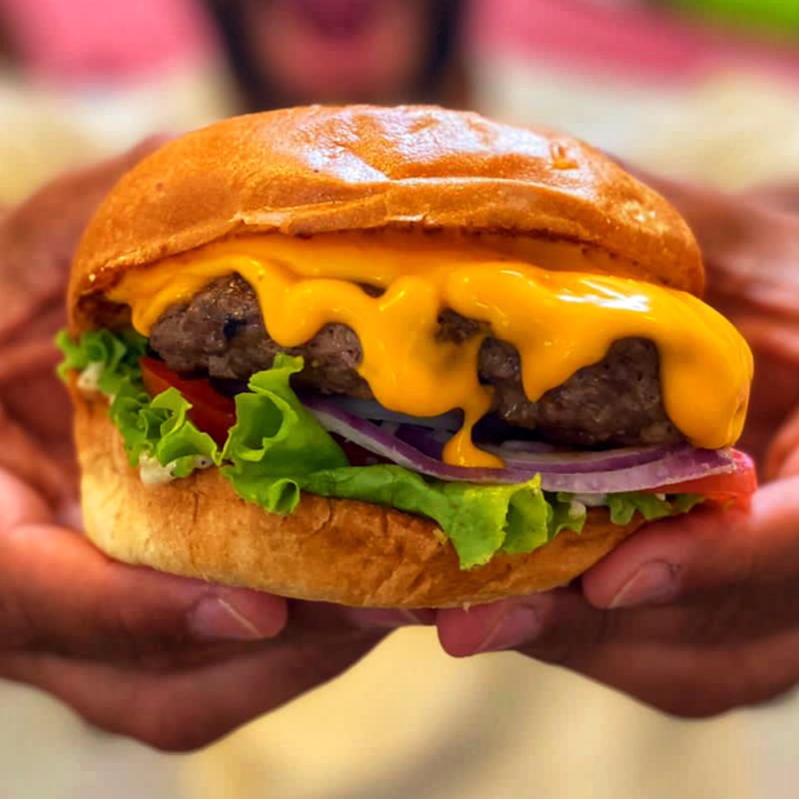 Pan brioche, 150 g de carne artesanal, queso cheddar, lechuga, tomate, cebolla y salsa de la casa.